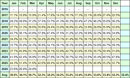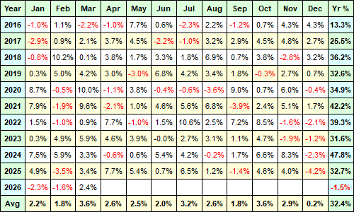 Average Monthly Returns USD / AUD